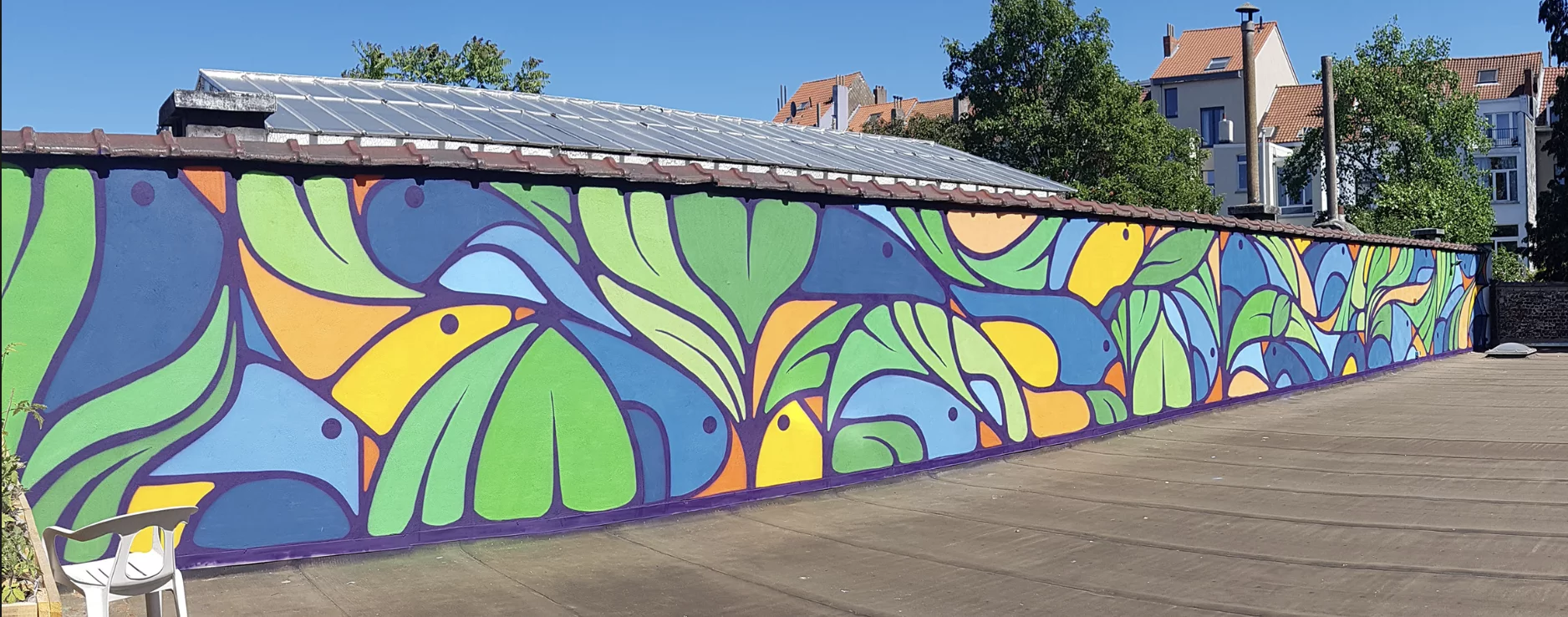 Attaché à la liberté et aux écosystèmes, son univers visuel illustre majoritairement des oiseaux évoluant dans des feuillages sous forme de vitraux inspirés de l'art nouveau Belge de son pays natal.
