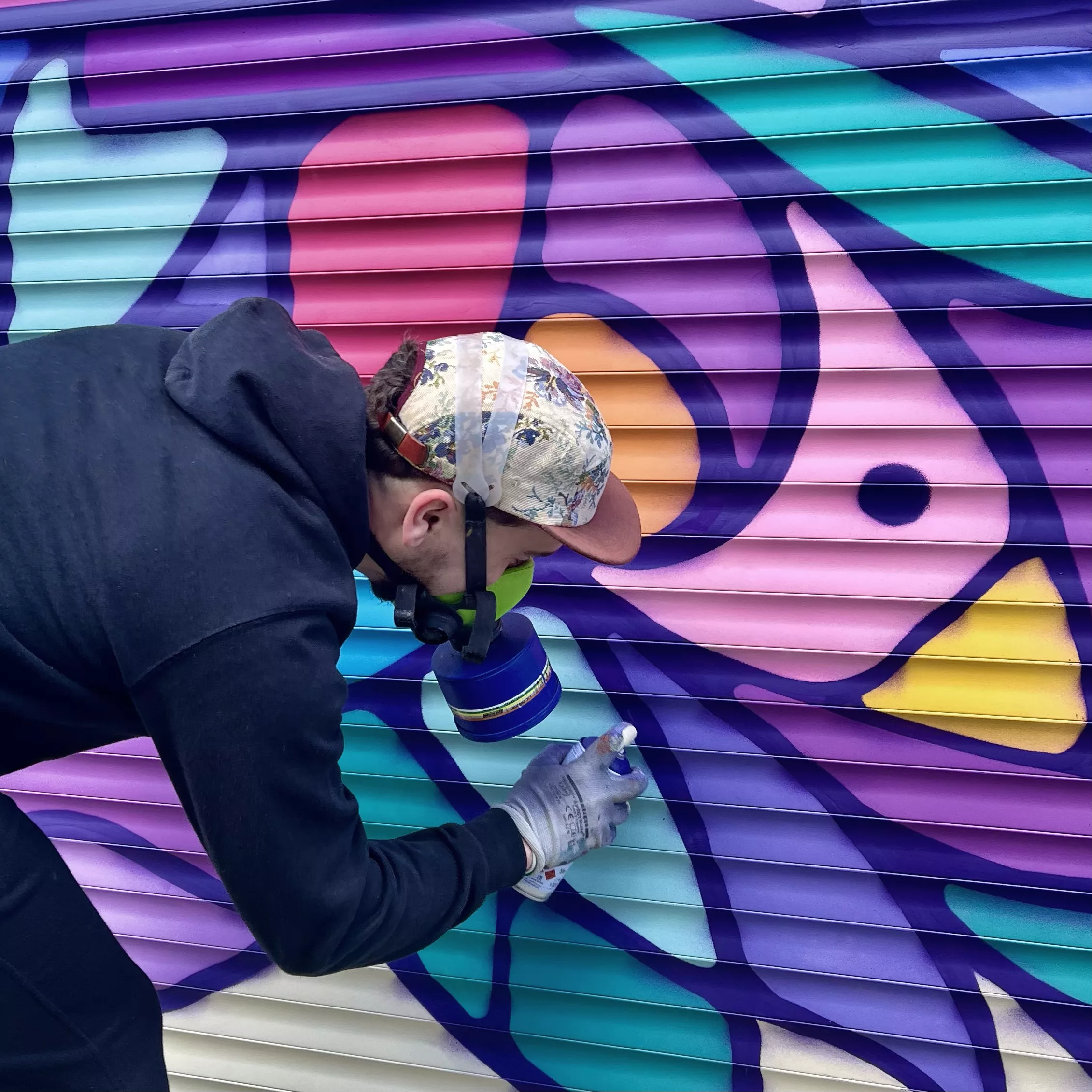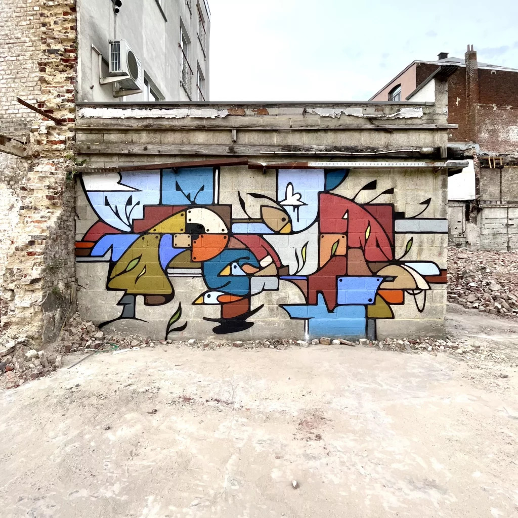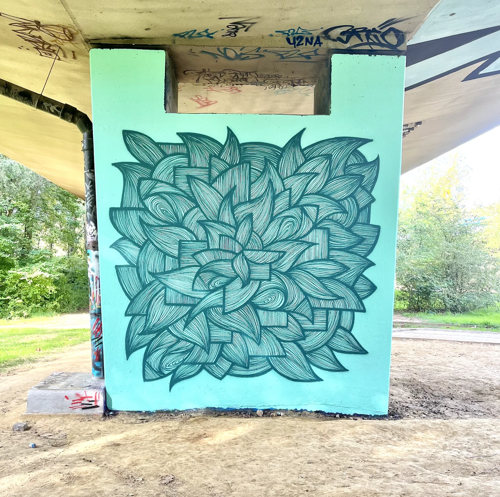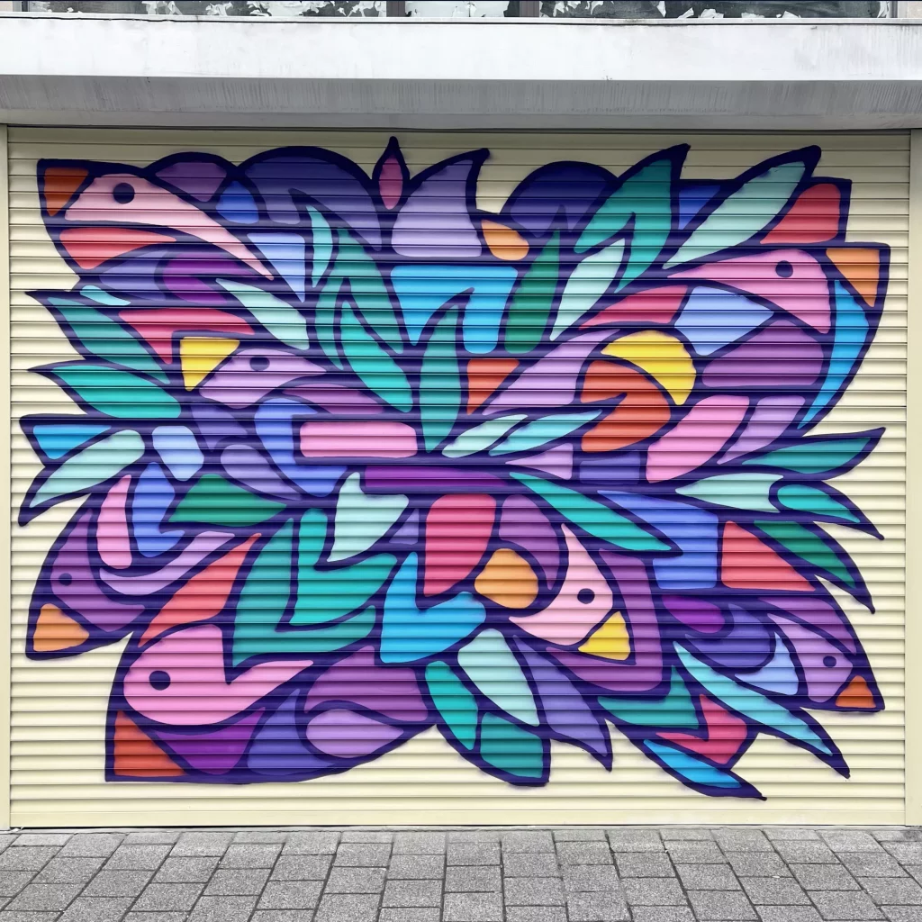 Riche de 15 années d'expérience avec la peinture en spray, des lettrages aux portraits et des murs aux toiles, son style mélange aujourd'hui l'équilibre et le flow du graffiti avec la force apaisante de la géométrie dans des compositions propres, abstraites et résolument modernes.