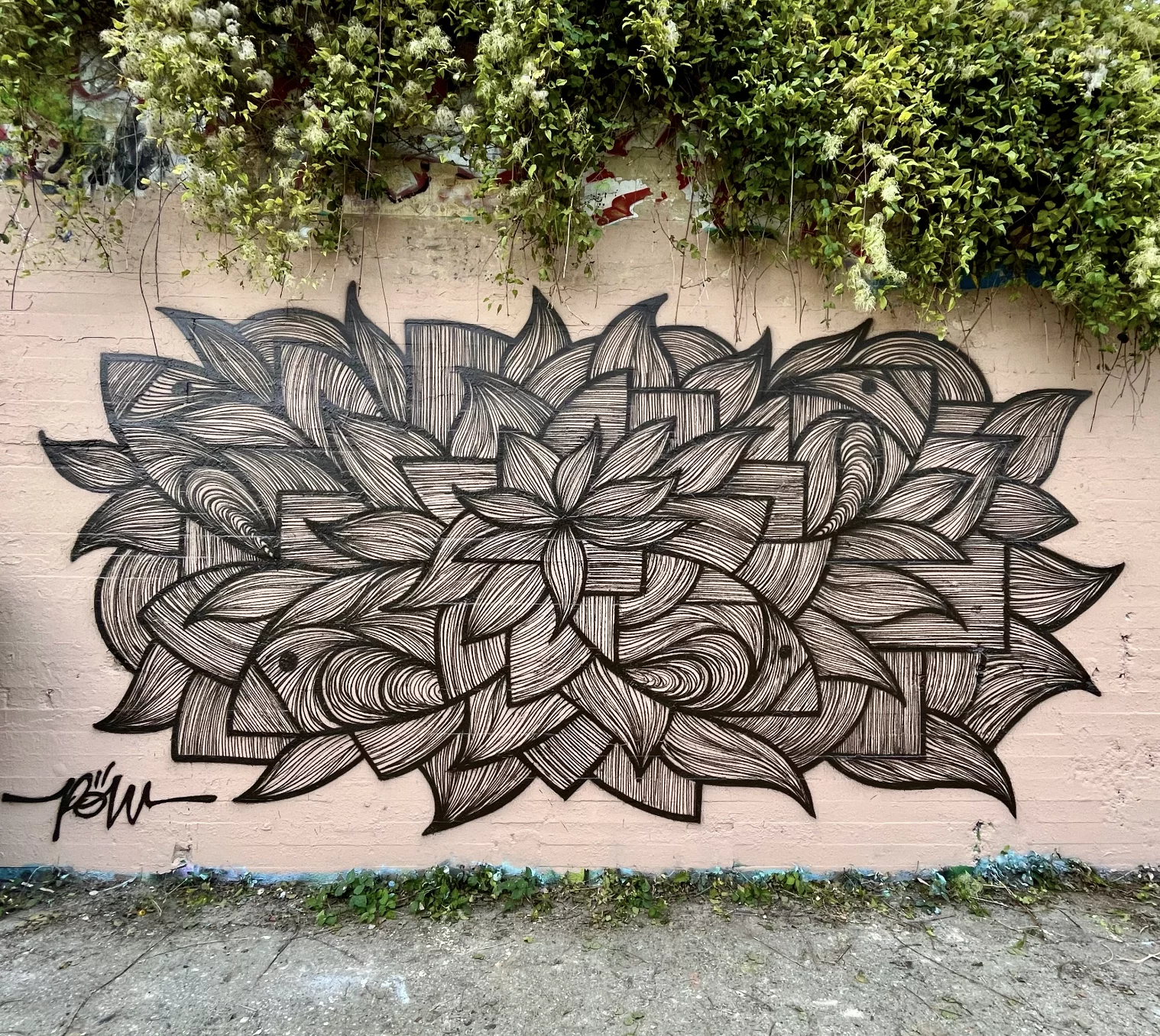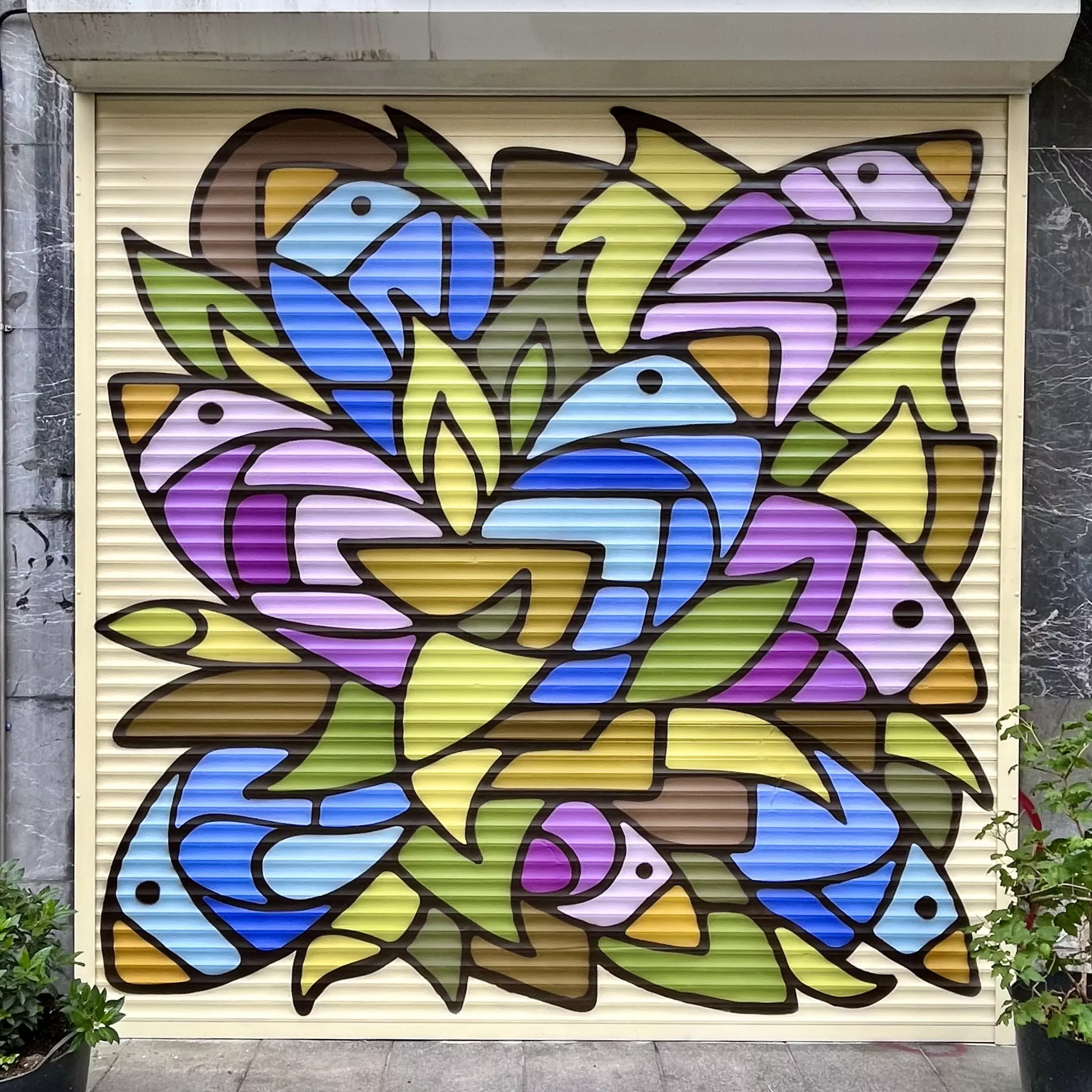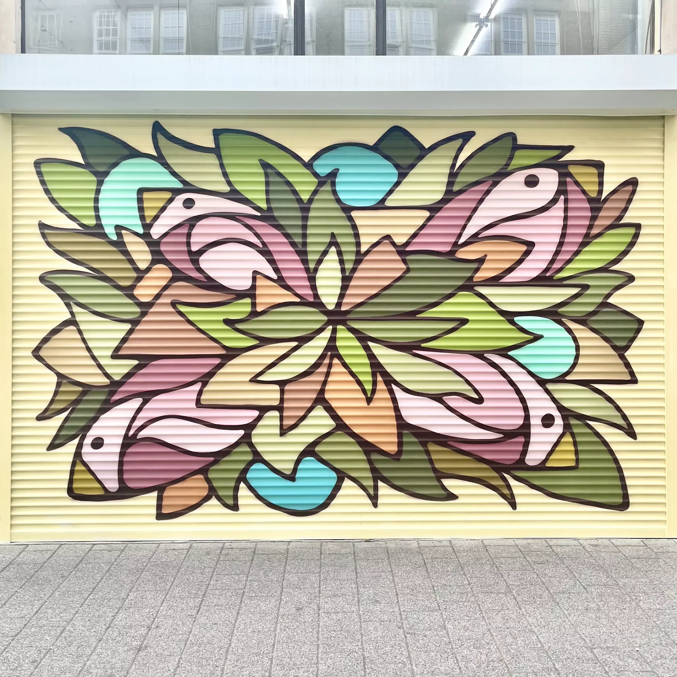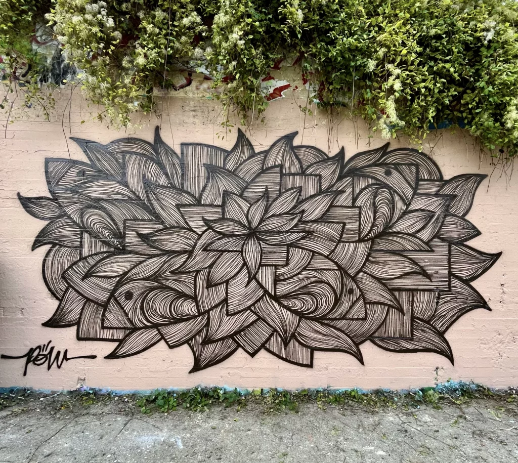Riche de 15 années d'expérience avec la peinture en spray, des lettrages aux portraits et des murs aux toiles, son style mélange aujourd'hui l'équilibre et le flow du graffiti avec la force apaisante de la géométrie dans des compositions propres, abstraites et résolument modernes.